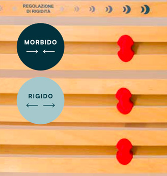 Rete ergonomica con telaio in multistrato di faggio resinato, piattelli flessibili 360° con regolazione di sostegno personalizzato, garantisce al supporto un’elevata flessibilità autoadattante su tutta la superficie di contatto.