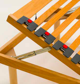 Meccanismo articolato in acciaio a 5 sezioni di movimento che permette di regolare l’alzata testa e piedi in ogni posizione si desideri.