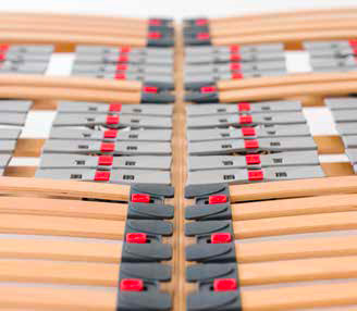 Rete ergonomica con telaio in multistrato di faggio resinato, piattelli flessibili 360° con regolazione di sostegno personalizzato su spalle e bacino, abbinate a sospensioni ammortizzate con tasto di regolazione della rigidità e doghe in multistrato di faggio resinato a 7 strati che garantiscono al supporto un’elevata flessibilità e una lunga durata.