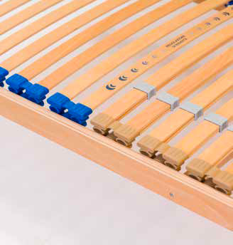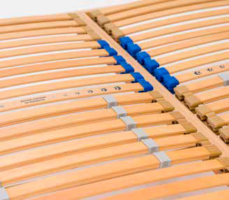 Rete ortopedica con telaio in multistrato di faggio resinato. Inserto portadoghe calibrato, anticigolio. Cursori di rigidità nella zona bacino e doghe in multistrato di faggio resinato a 7 strati, garantiscono al supporto un’elevata resistenza e una lunga durata.
