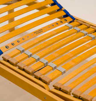 Rete ergonomica con telaio in multistrato di faggio resinato, piattelli flessibili 360° con regolazione di sostegno personalizzato, garantisce al supporto un’elevata flessibilità autoadattante su tutta la superficie di contatto.